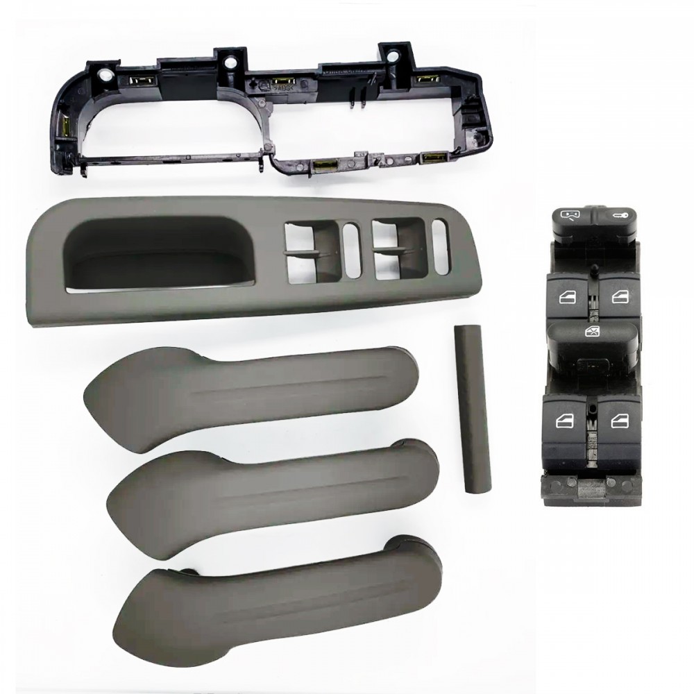 Kit Completo Puxador Moldura Vidro Golf Cinza + Botao