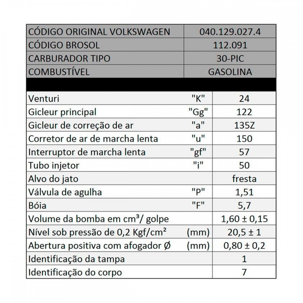Carburador Fusca 1300 Gasolina Solex 30-pic Brosol 112091